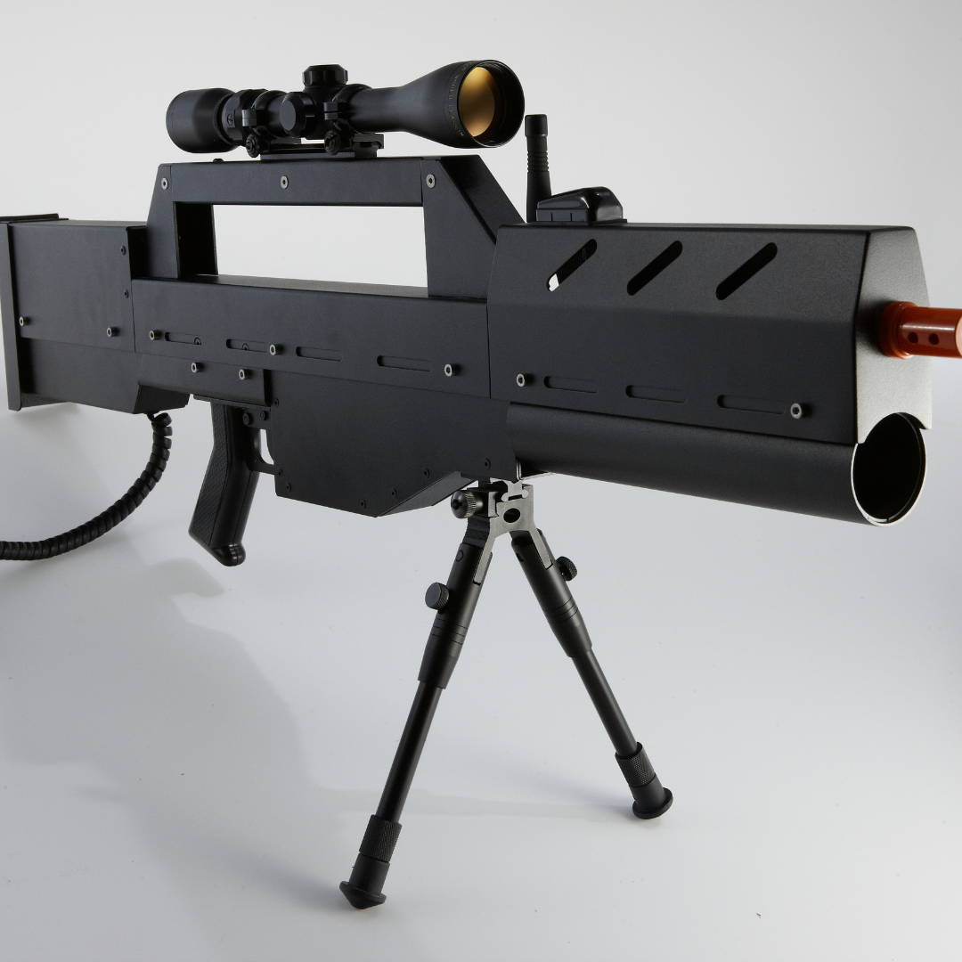 This extreme range gun is best used with the telescopic scope, because it shoots so far you might not even be able to make out if the person you are shooting at is on your team or not. This is our most accurate semi auto sniper rifle ever built, because it is a light based system the gun shoots dead straight. ,